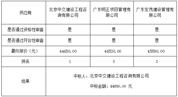 1:中標(biāo)供應(yīng)商名稱北京中交建設(shè)工程咨詢有限公司 法人代表 陳榮輝 地址北京市朝陽(yáng)區(qū)北苑路170號(hào)凱旋城3號(hào)樓4層0501